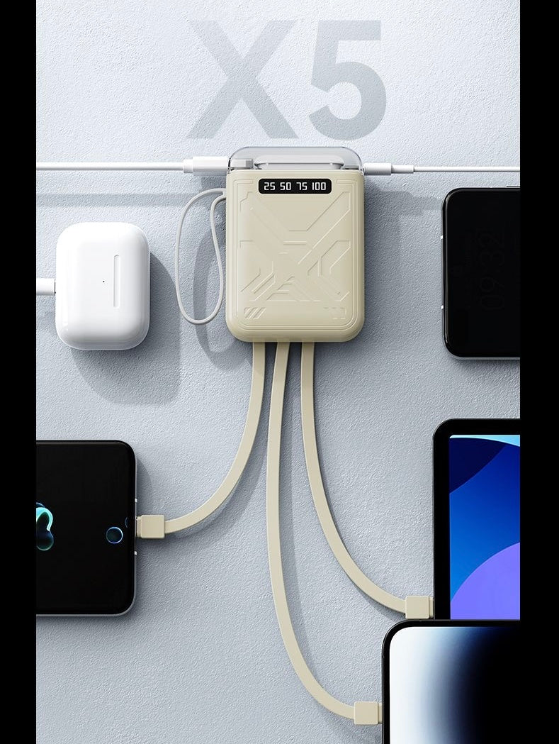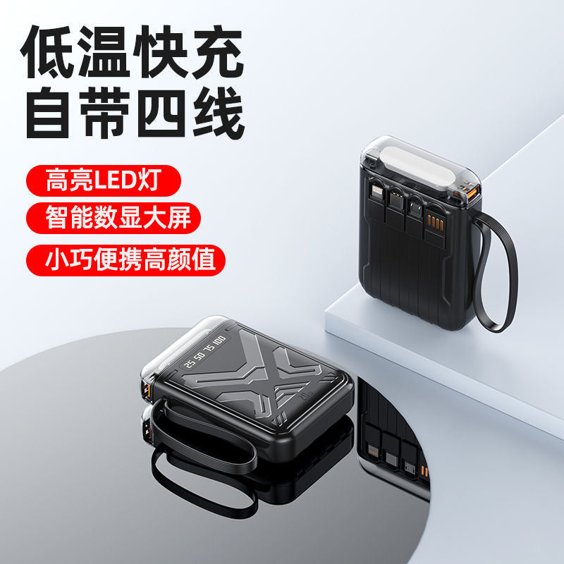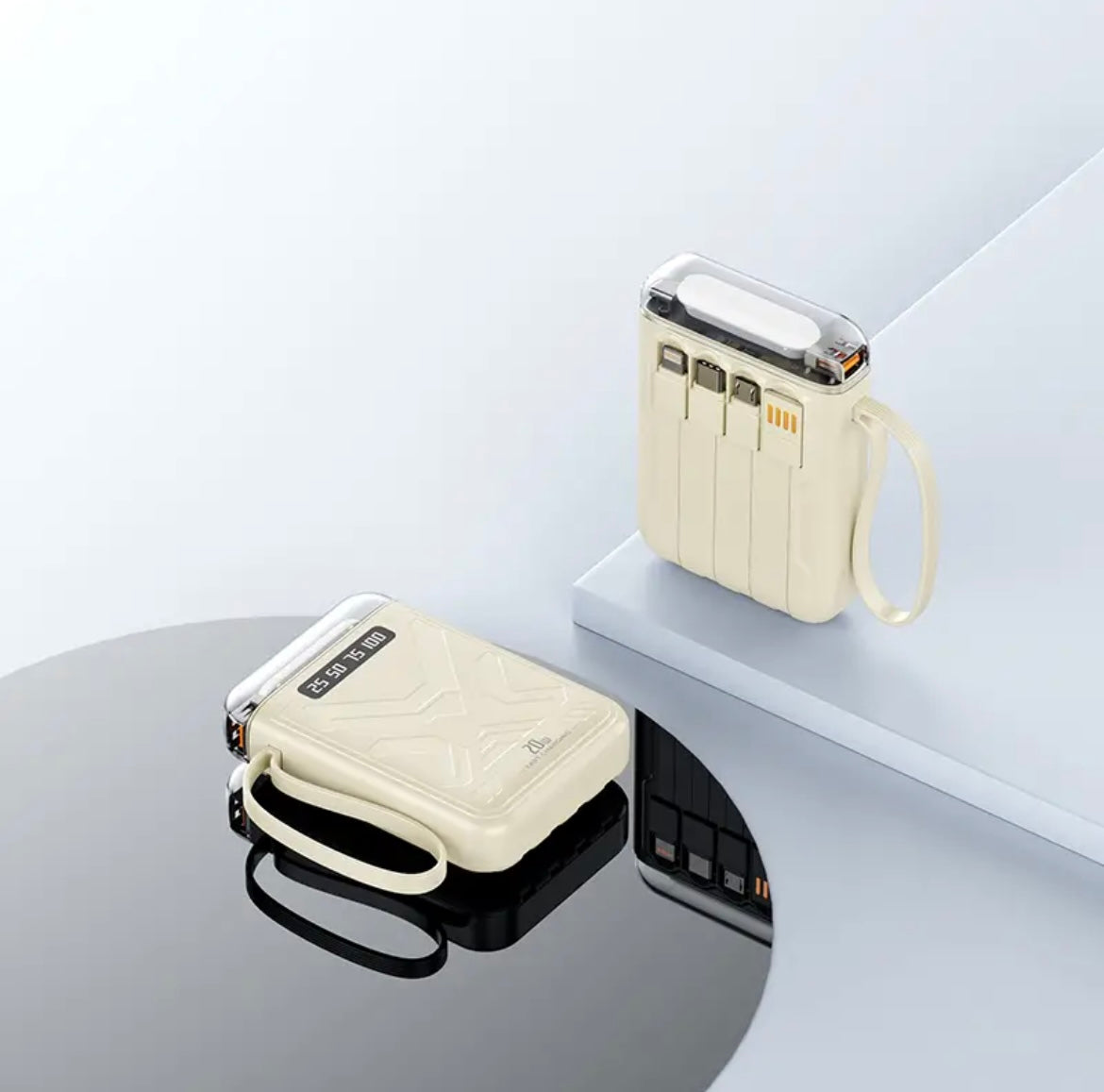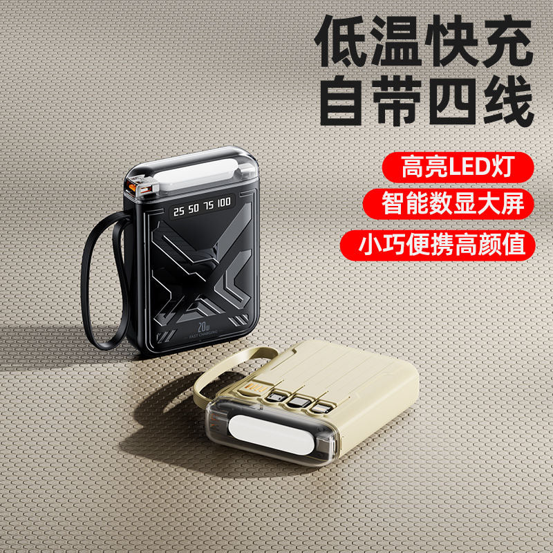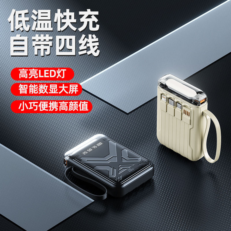 يأتي مع بنك طاقة 20000 مللي أمبير في الساعة مزود بأربعة أسلاك بسعة كبيرة وشحن سريع وبنك طاقة صغير محمول عالمي للهواتف المحمولة