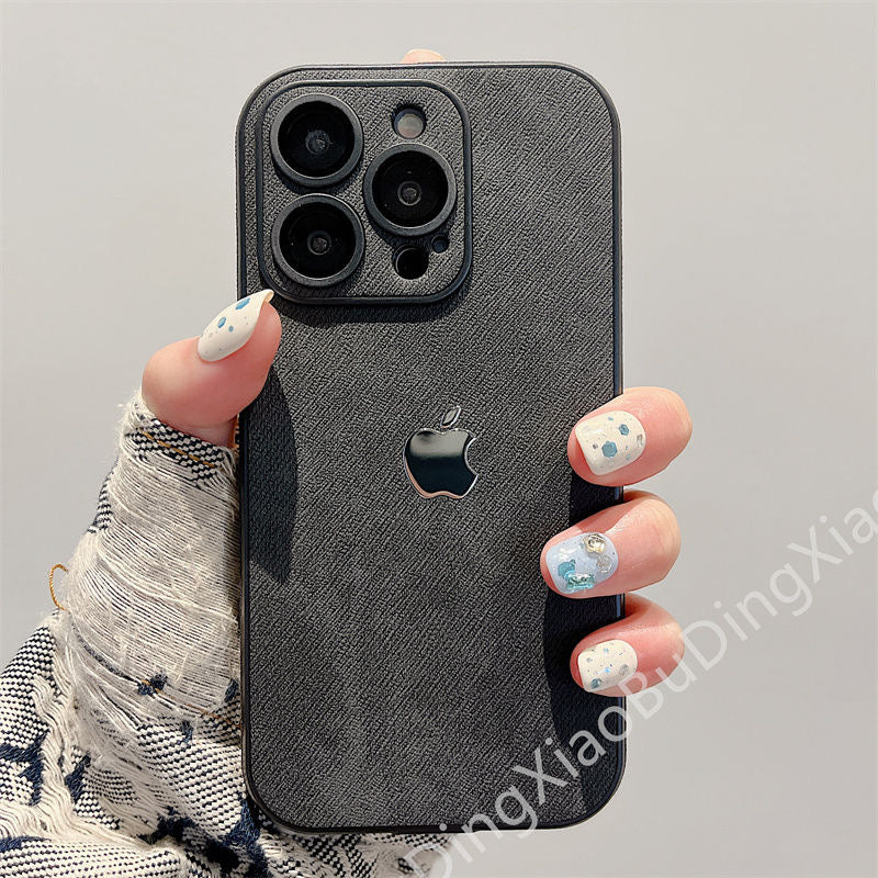 جراب جلدي شامل لهاتف Apple 15-12، مقاوم للسقوط، مع غشاء عدسة، وحواف ناعمة من السيليكون.