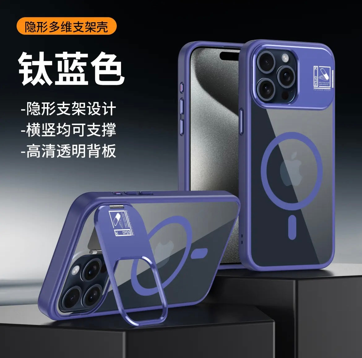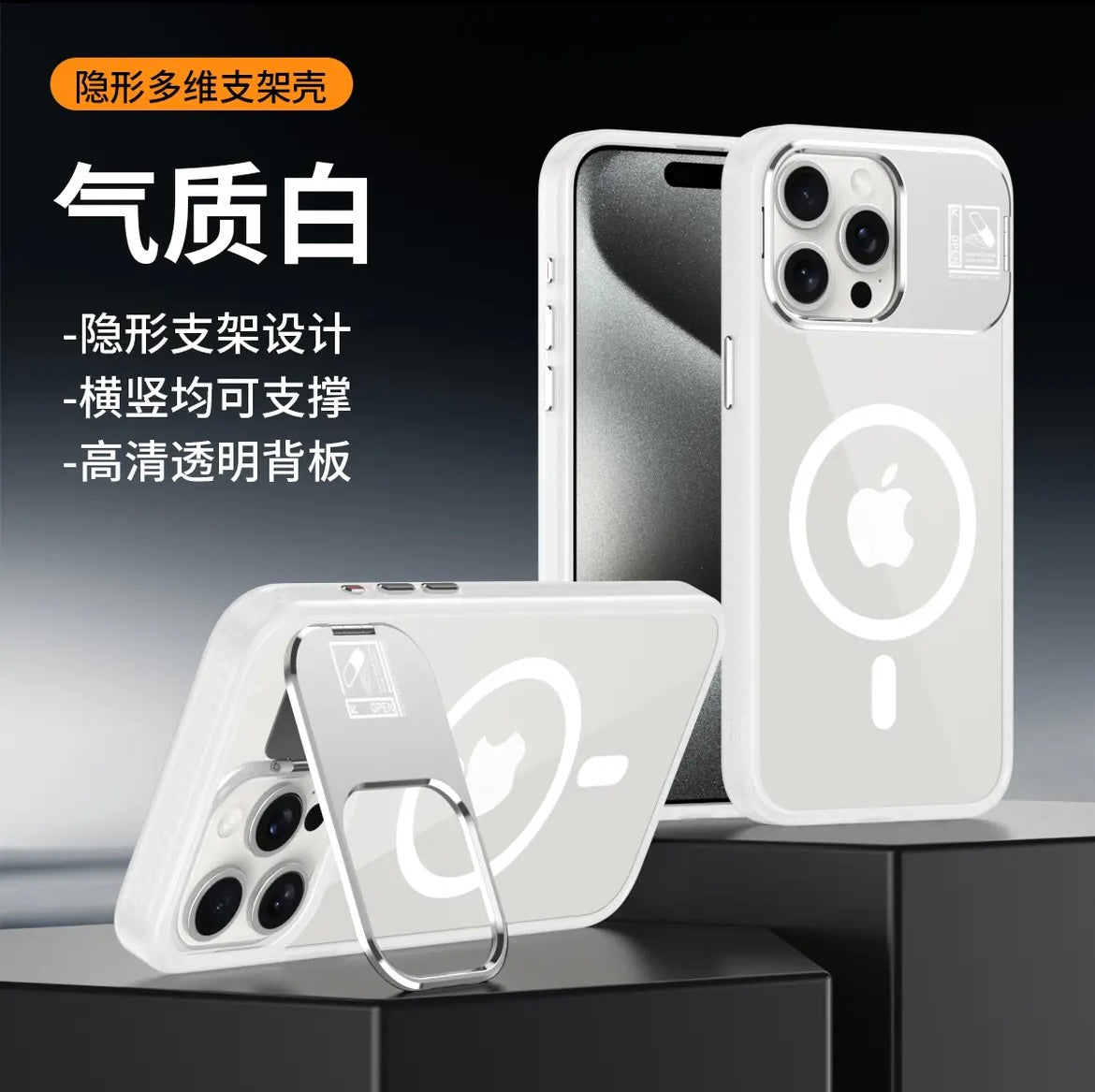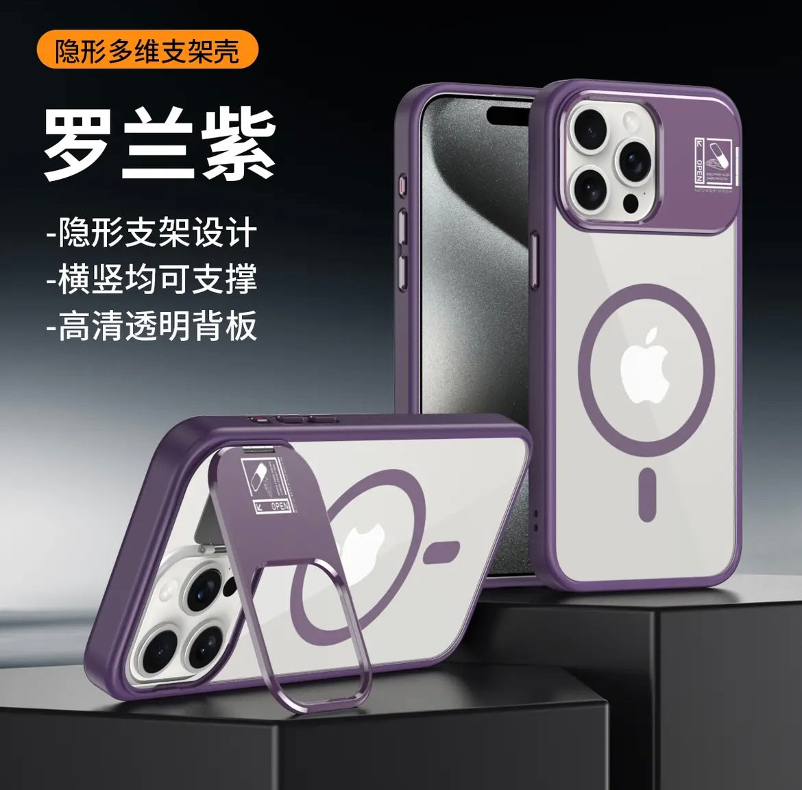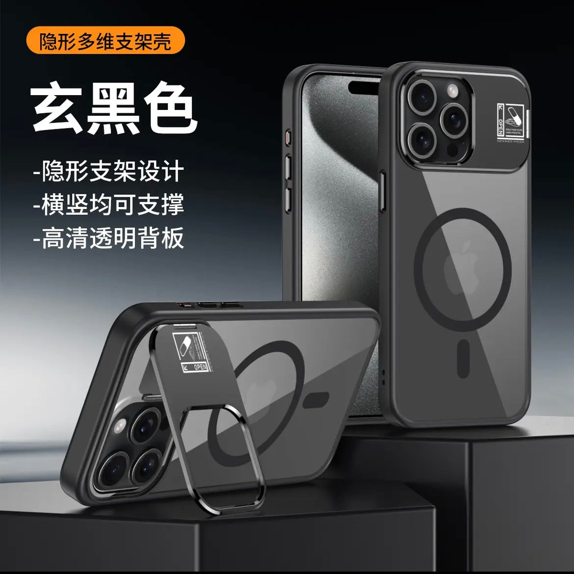 جراب هاتف محمول غير مرئي متعدد الأبعاد مزود بحامل مغناطيسي مضاد للسقوط لهاتف Apple 15/13