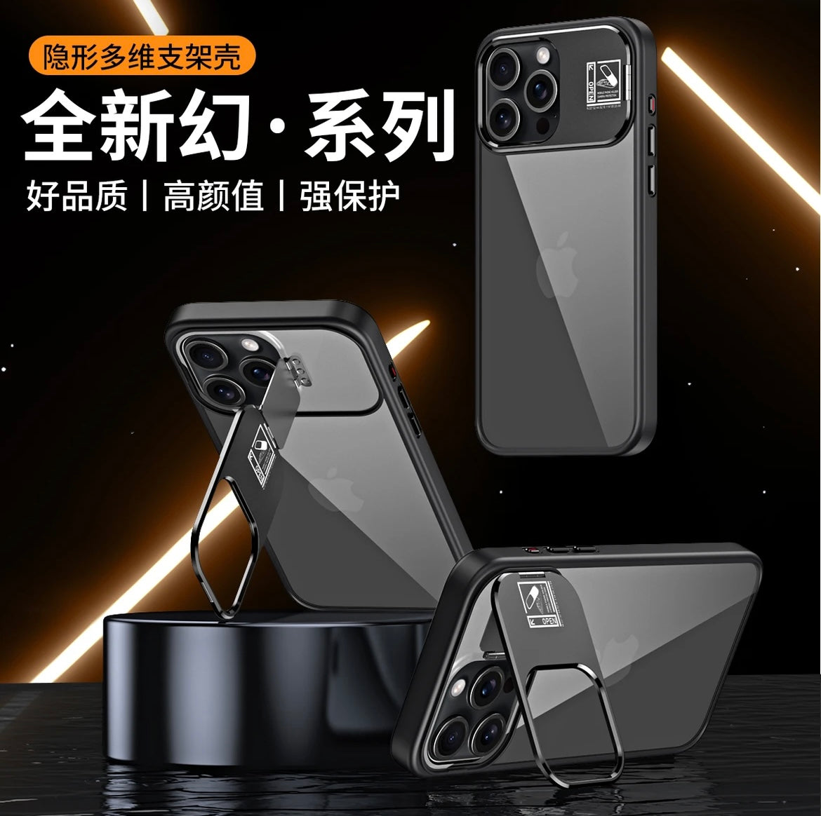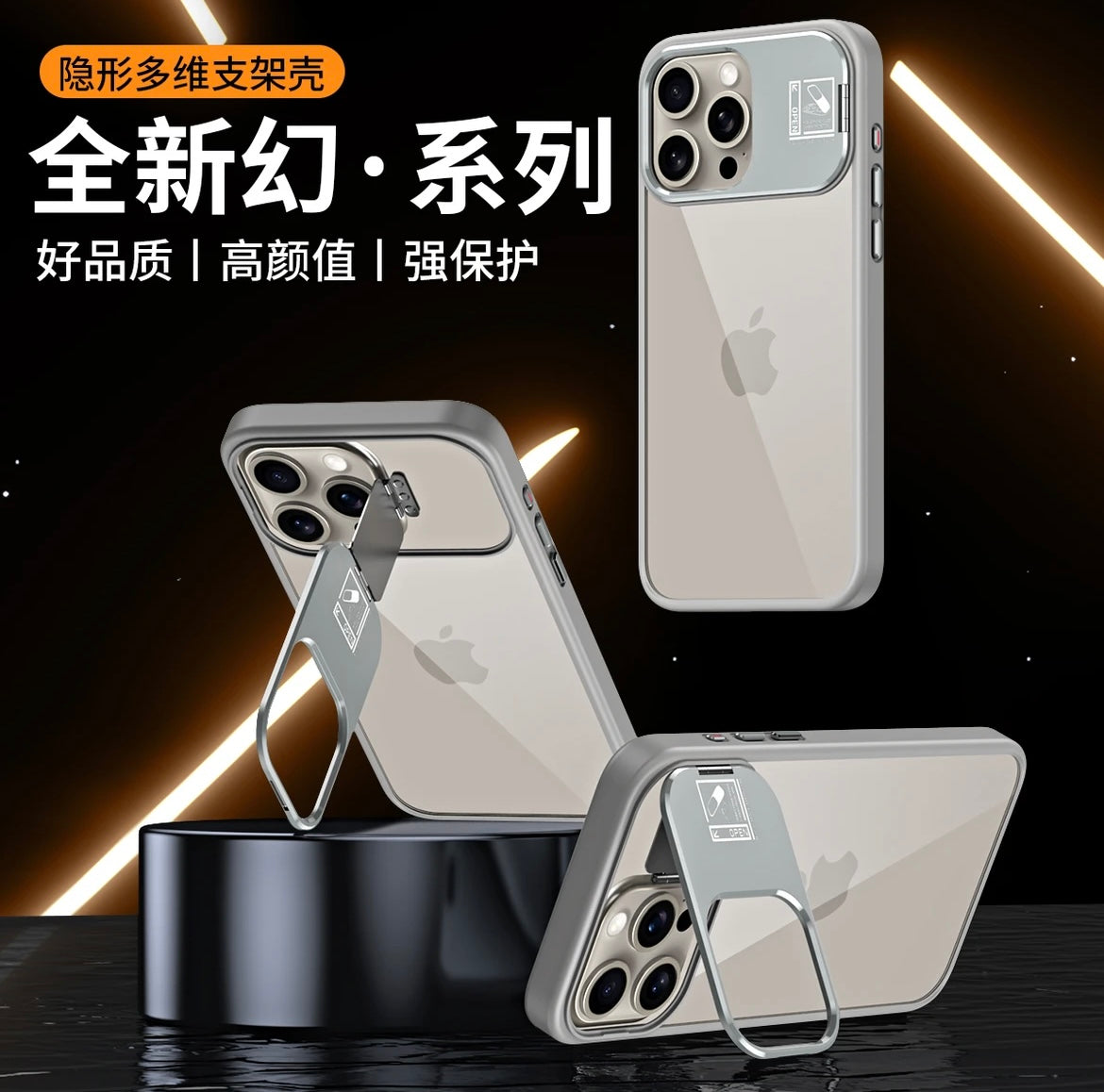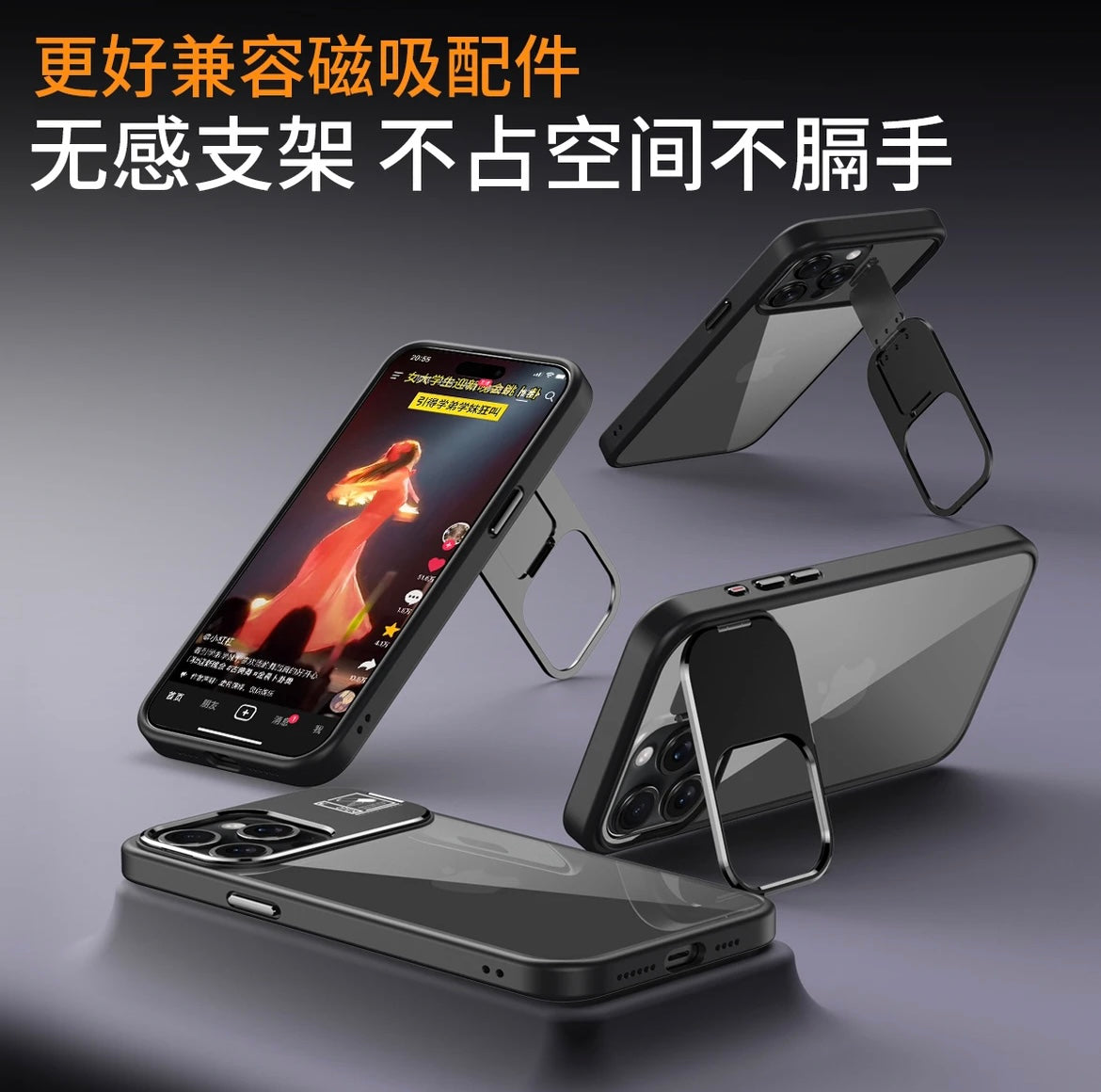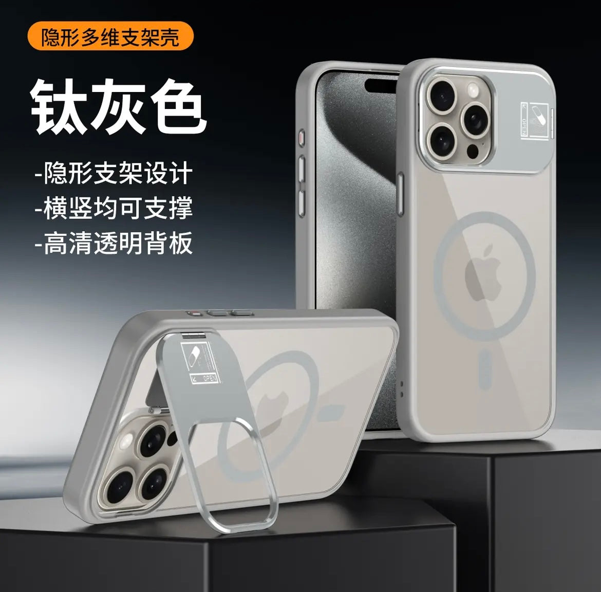 جراب هاتف محمول غير مرئي متعدد الأبعاد مزود بحامل مغناطيسي مضاد للسقوط لهاتف Apple 15/13