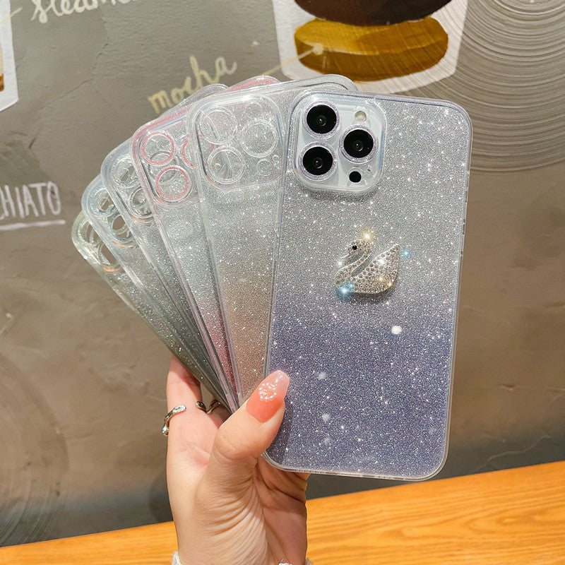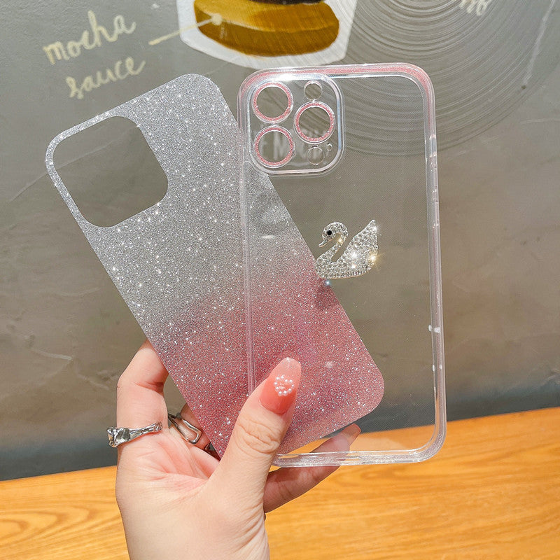 غطاء آيفون بتصميم بجعة جميلة متدرجة الألوان