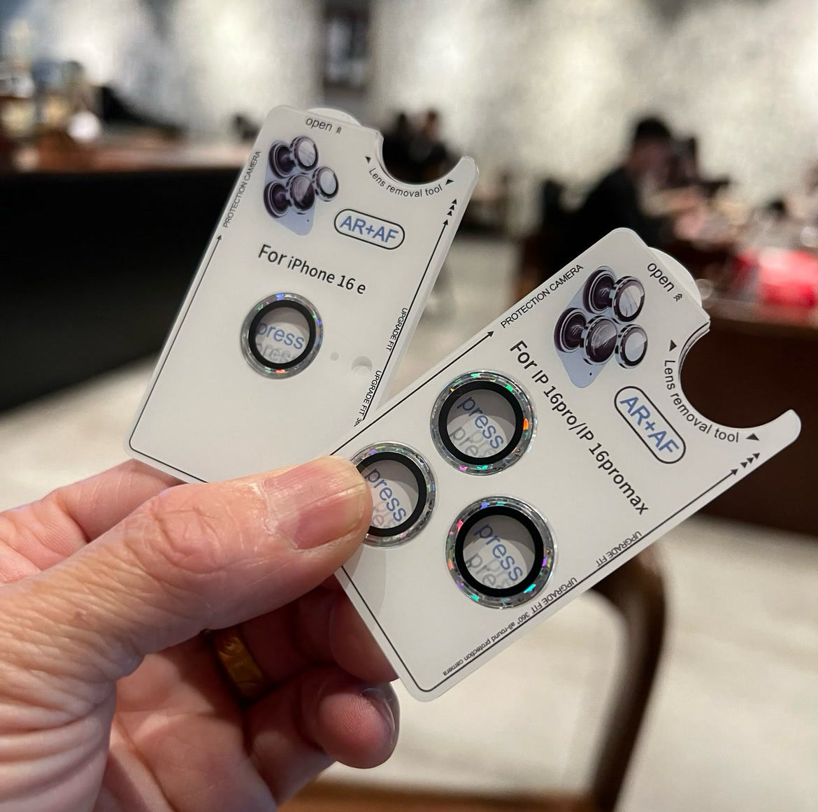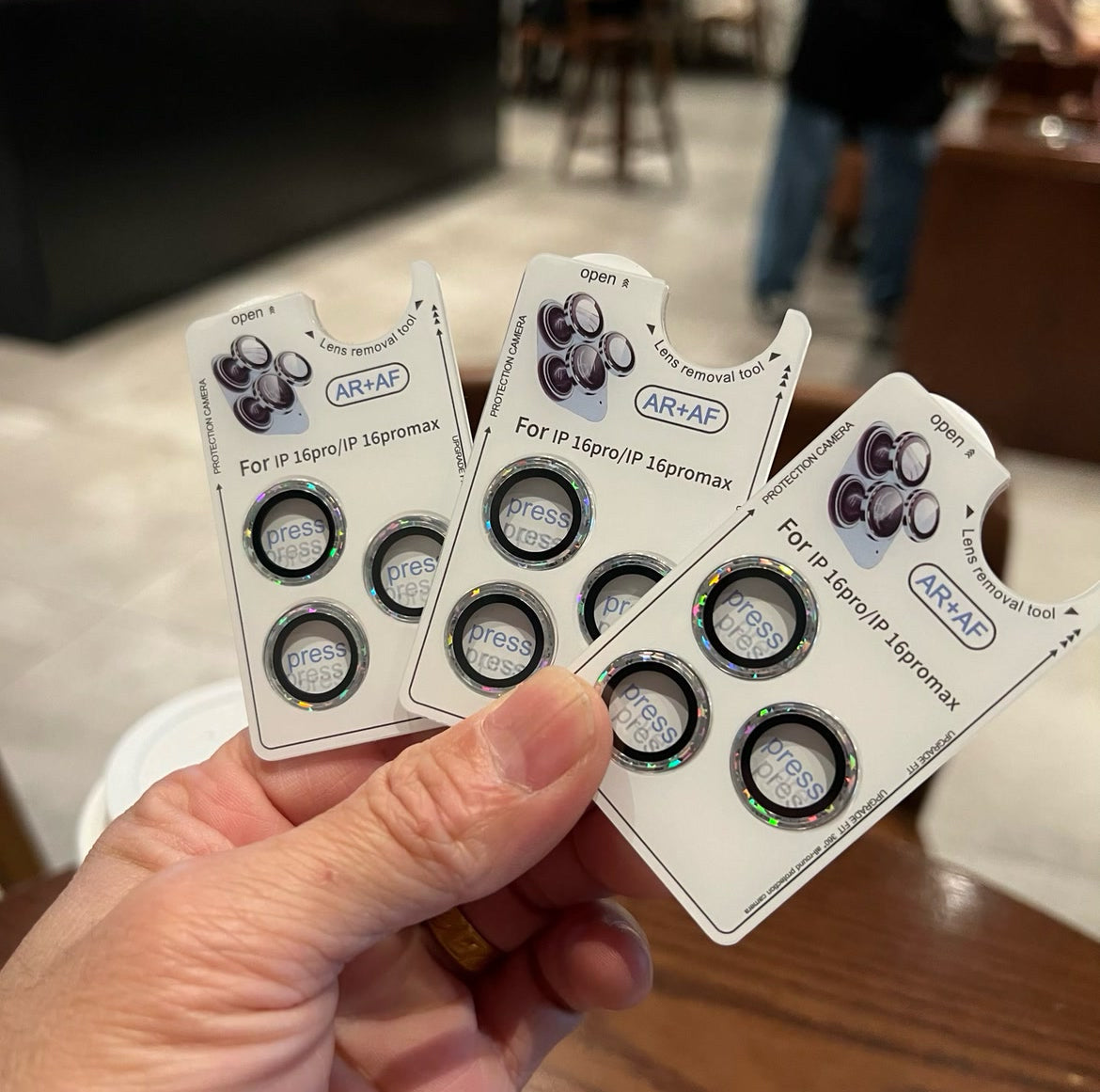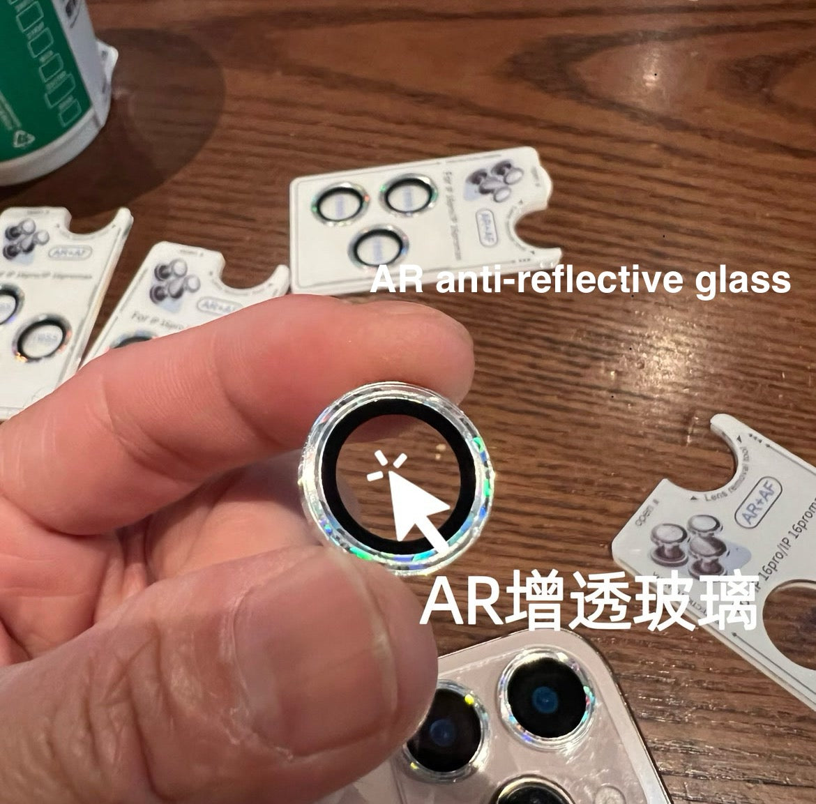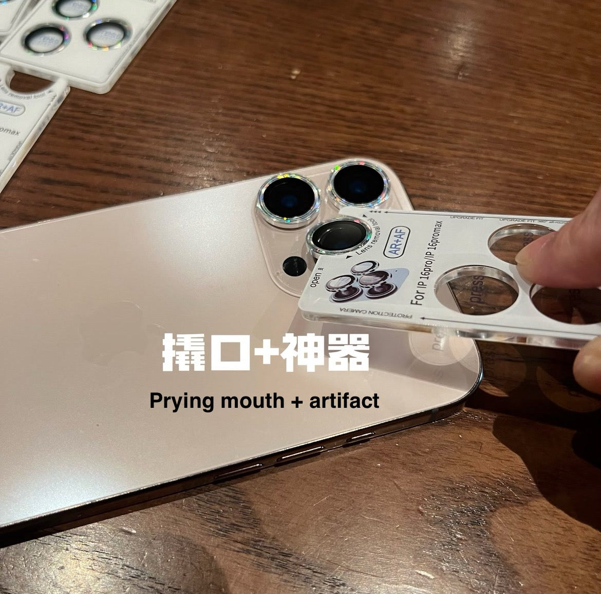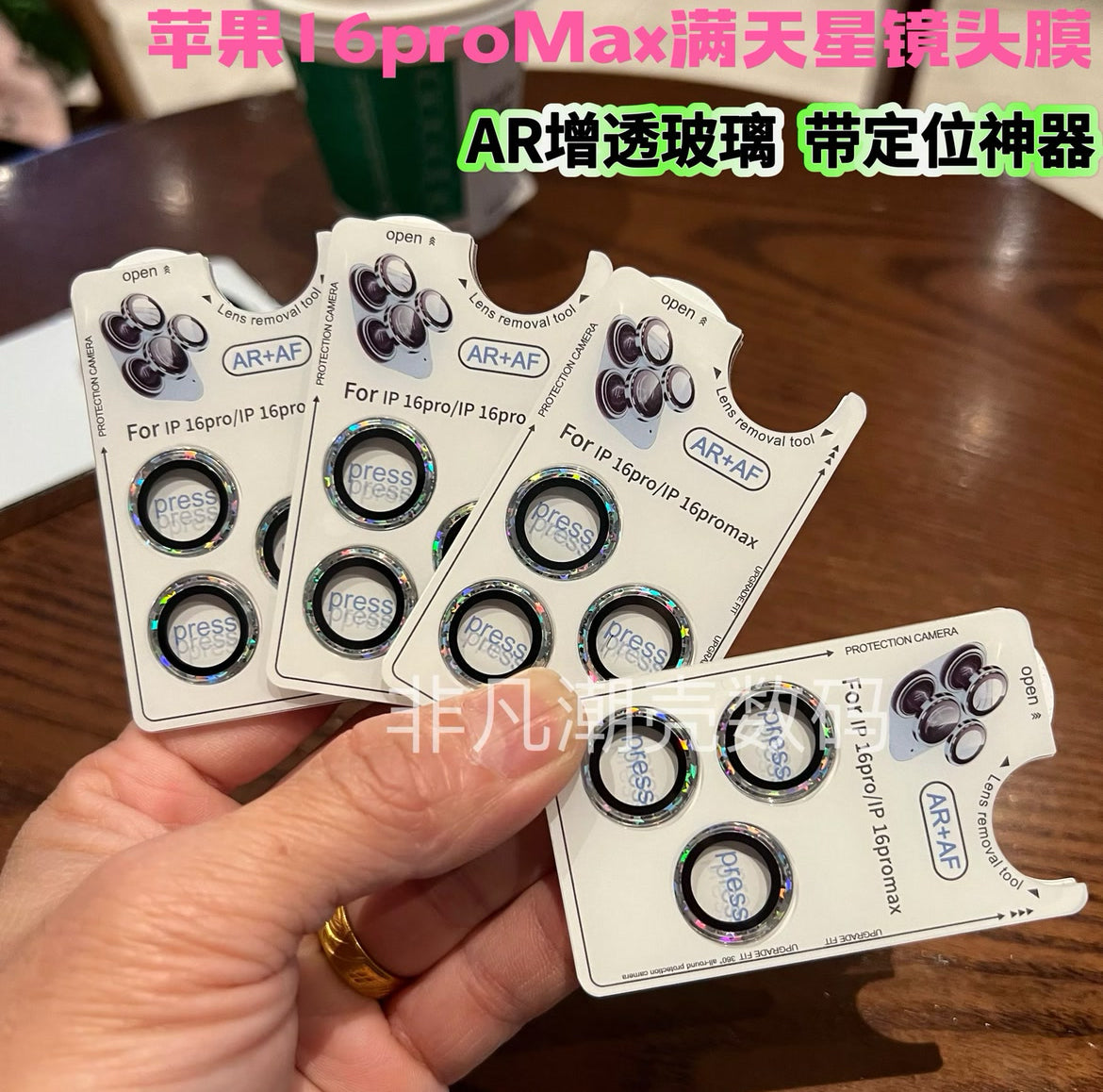 فيلم عدسة لاصقة فورية لجهاز Apple 16-11 مرصع بالنجوم، فيلم كاميرا خلفية زجاجي مضاد للانعكاس + فيلم مقوى مقاوم للانفجار