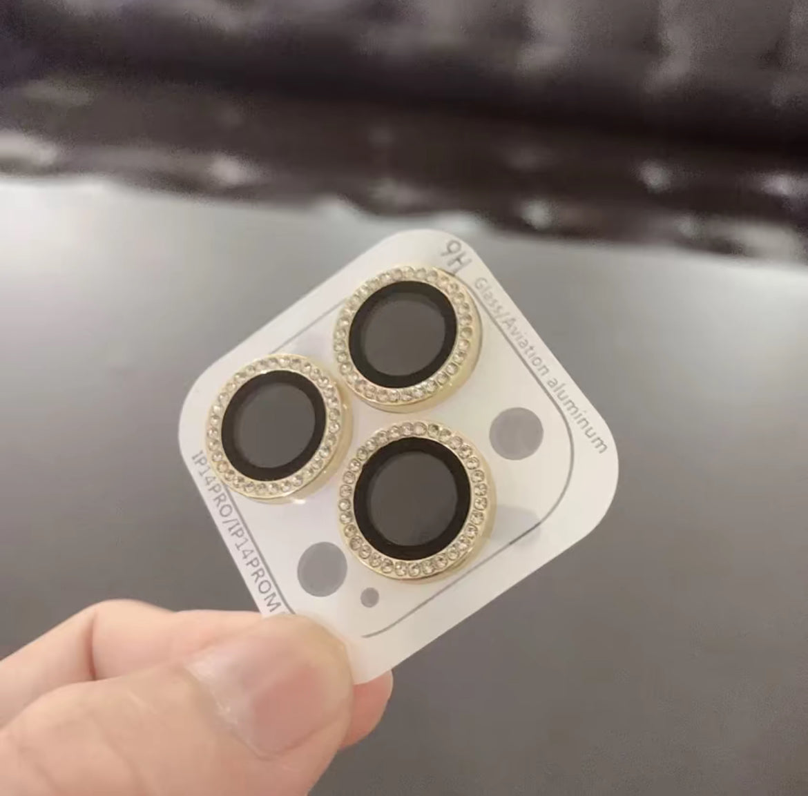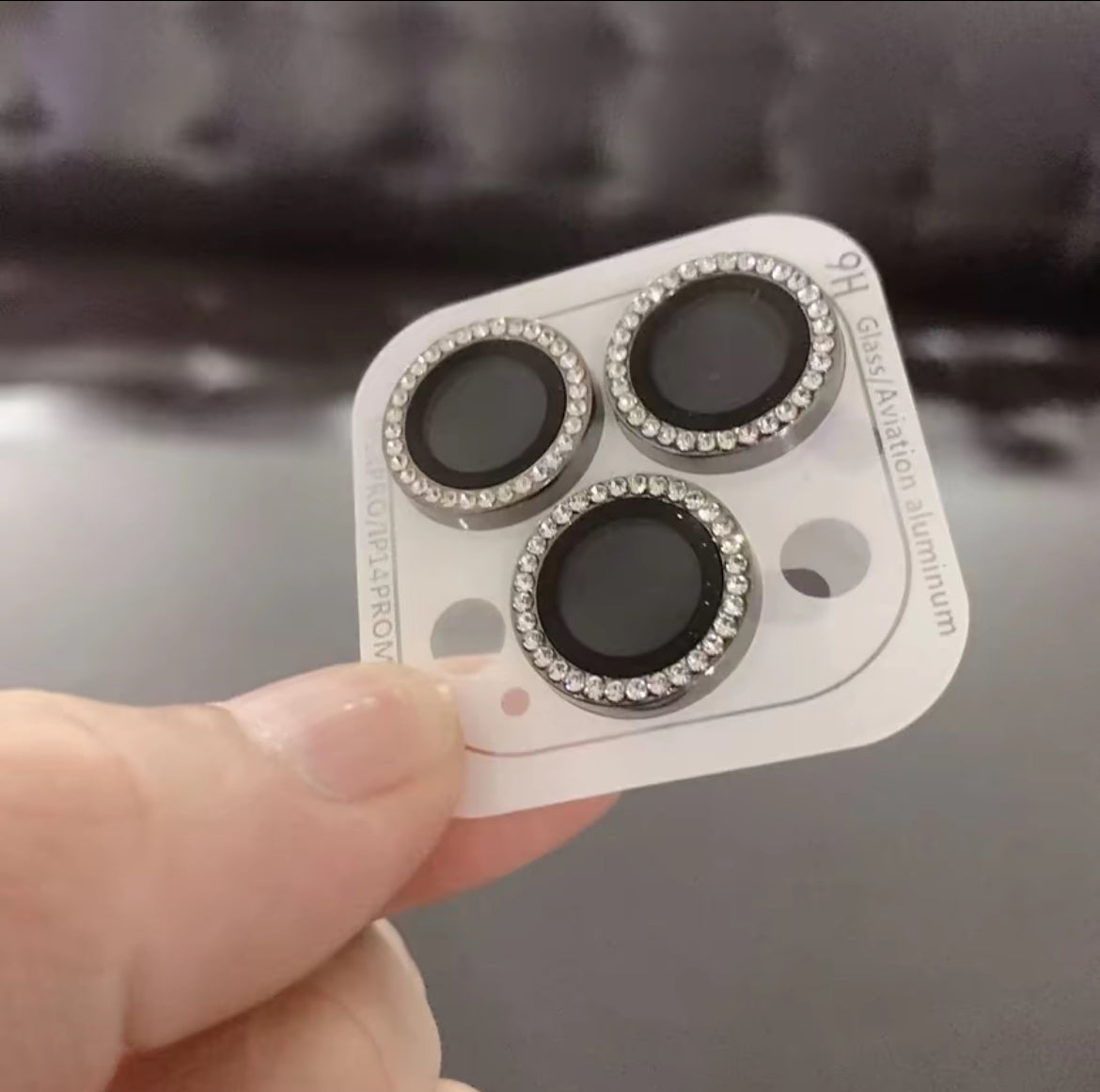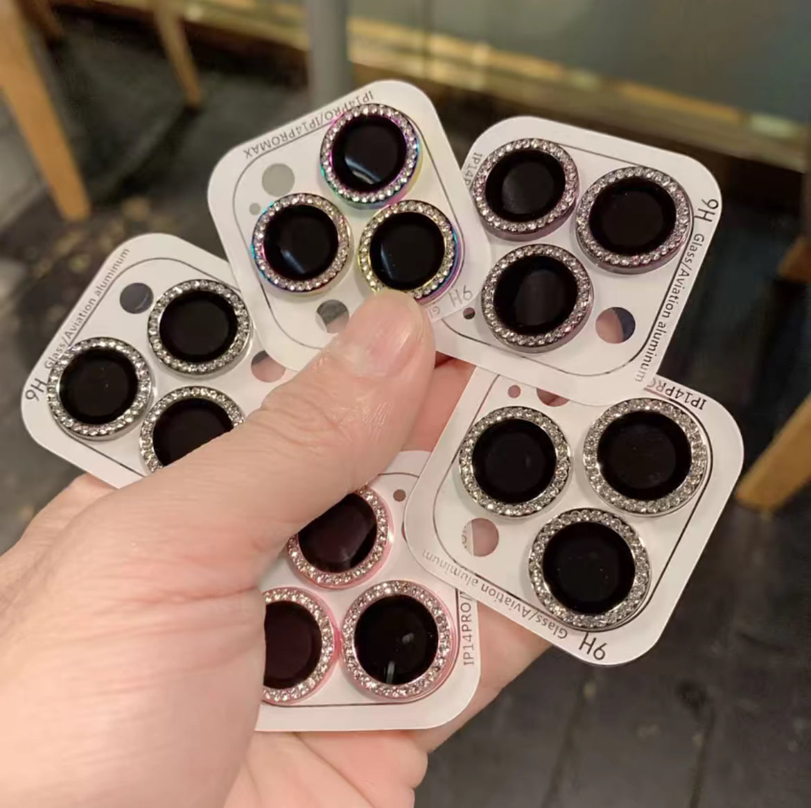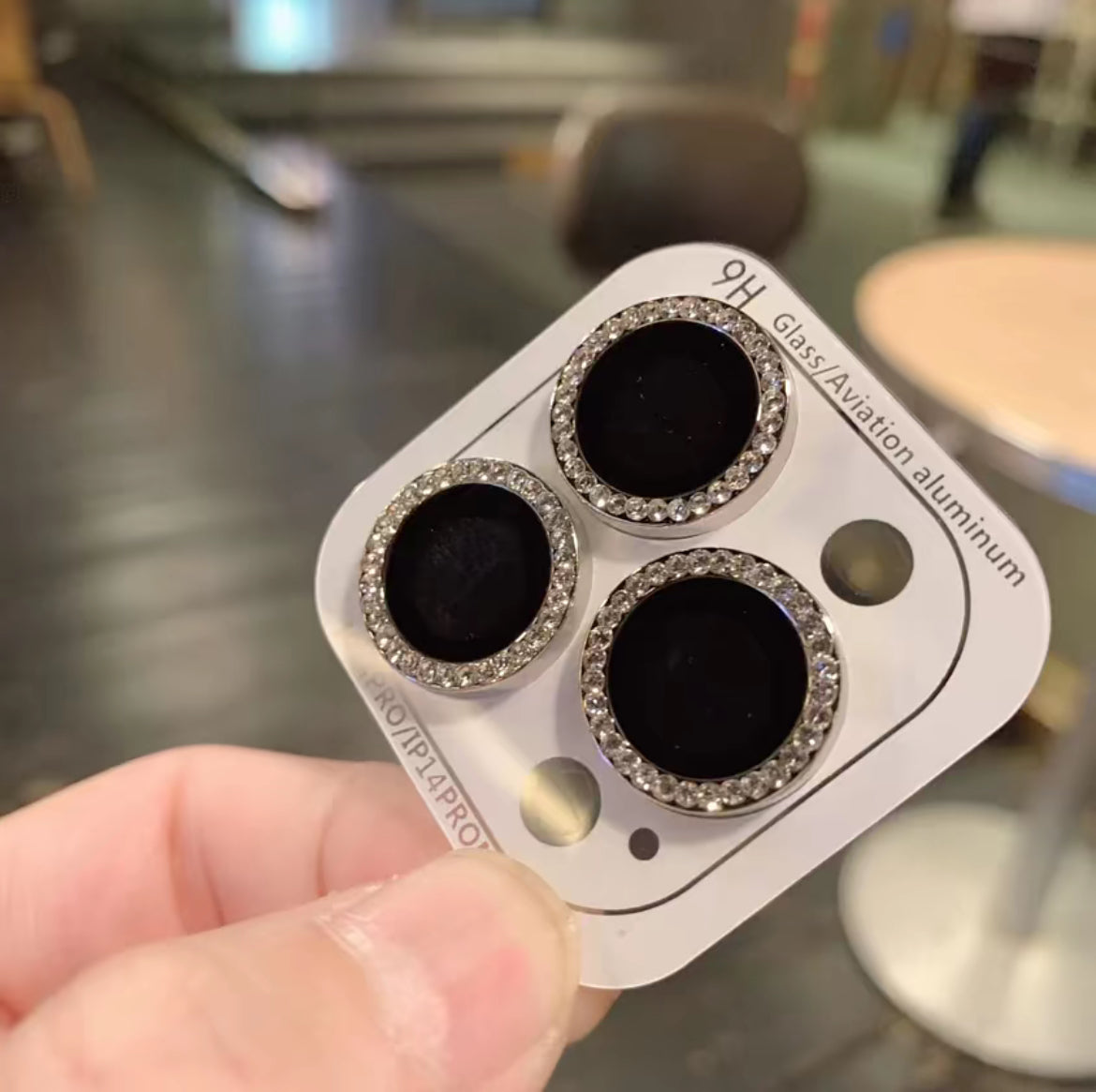 غشاء عدسة الهاتف المحمول الماسي لجهاز iPhone 16-12 مرصع بالمعدن