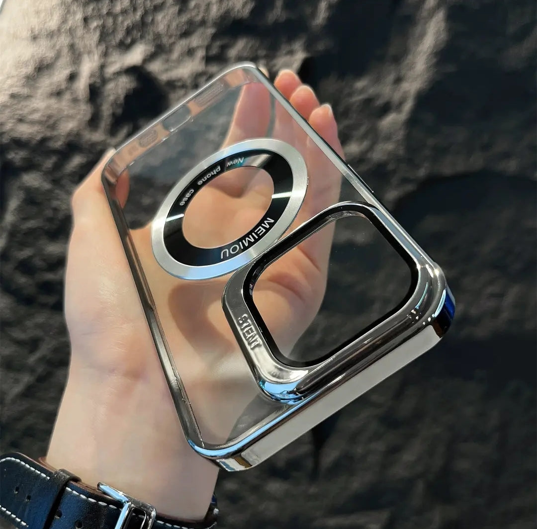 (3-in-1) Hidden Kickstand, Magsafing & Lens Protector Clear iPhone Case