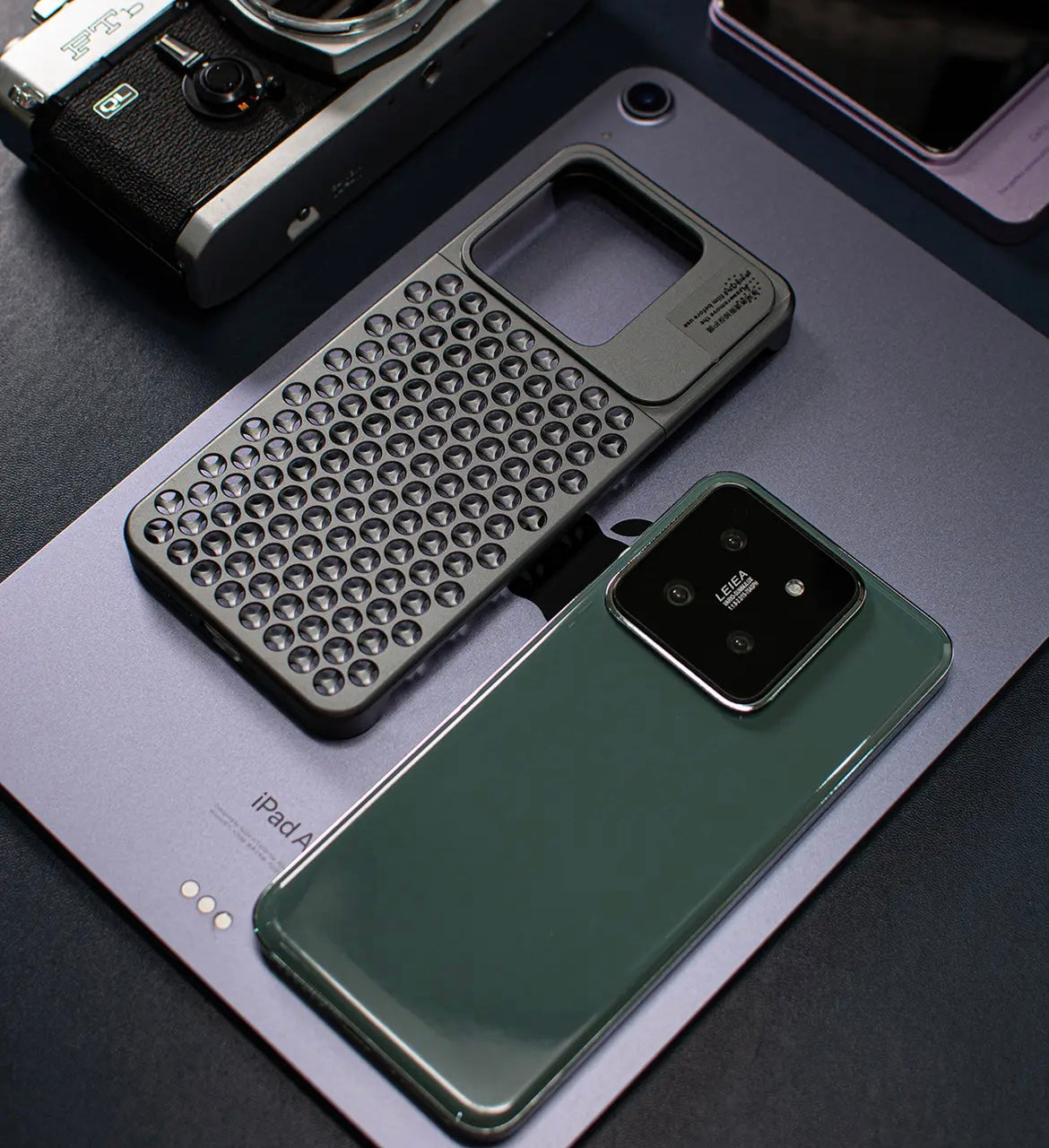 Xiaomi 14pro titanium metal mobile phone case high-end hole aromatherapy honeycomb heat dissipation